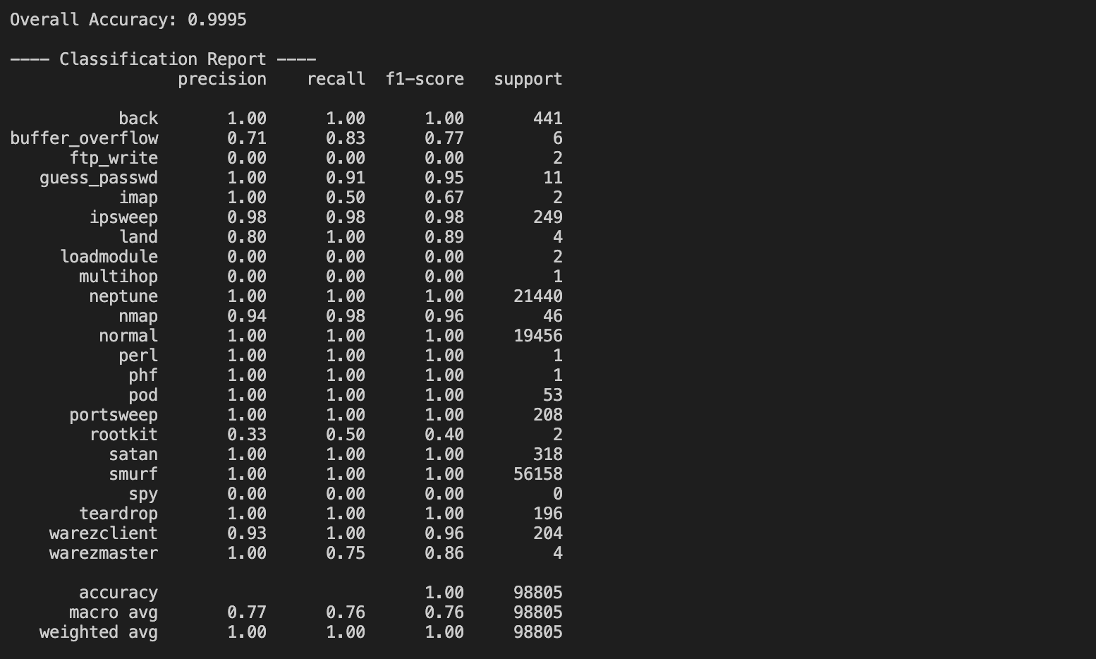 Built a machine learning model that detects network attacks using Random Forest Classification on KDD99 data with 99% accuracy, improving from a previous 33% accurate model.